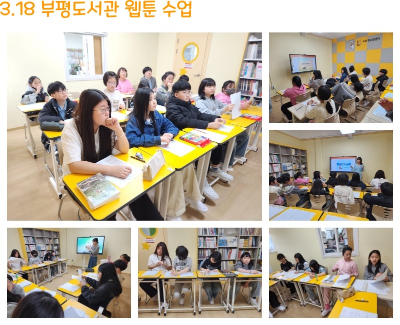 3월 18일 , 25일 센터 내에서 부평도서관 웹툰 수업이 있었습니다.