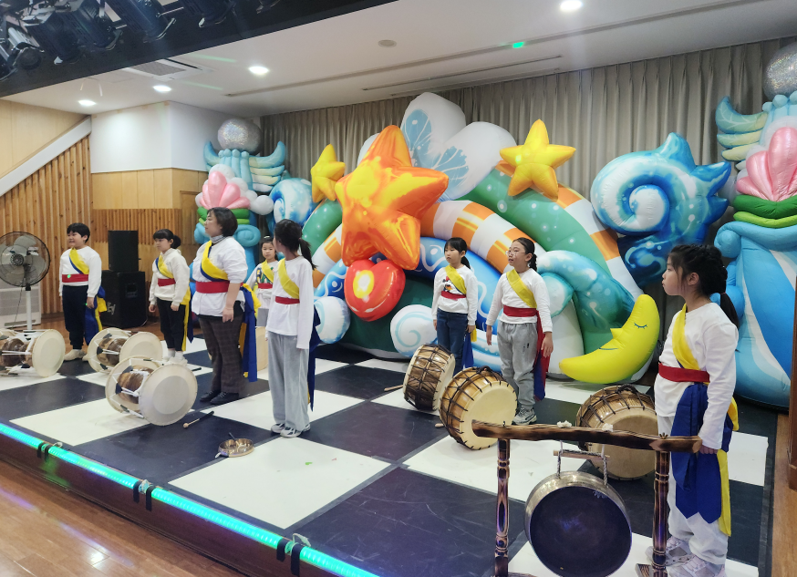 연합가족운동회에서 멋지게 연주한 달팽이 패의 사물놀이 공연