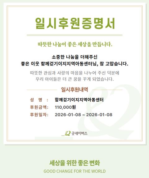 사용하지 않는 물건들을 판매하기도 하여 얻은 수익을 센터 이름으로 기부하였습니다.