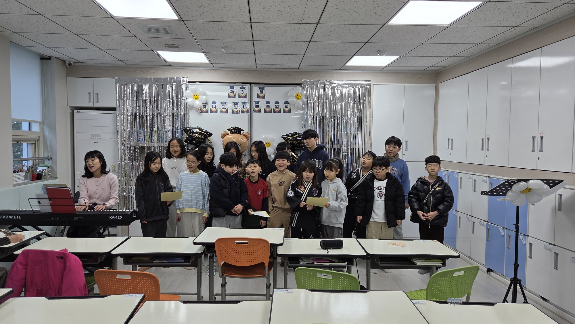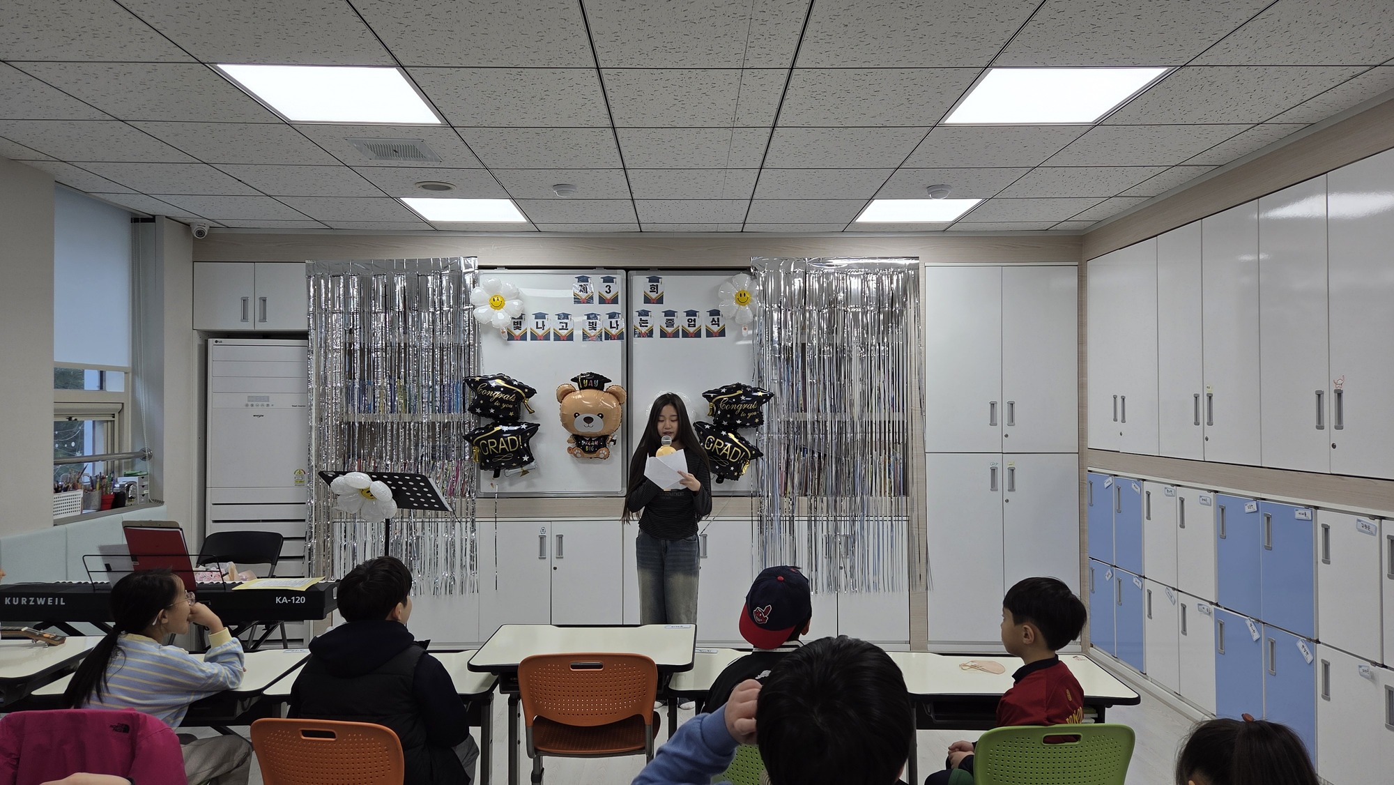재학생 대표 편지낭독 졸업생 편지낭독 선생님의 편지낭독 졸업장과 꽃다발 앨범 선물 전달 단체사진 촬영으로 졸업식을 마쳤습니다. 우리 아동의 중학생으로서의 시작을 응원합니다.
